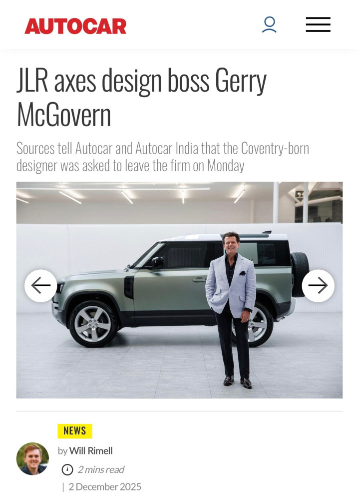 配资炒股最简单三个步骤 捷豹路虎解雇首席创意官, 曾设计路虎卫士、Type 00概念车